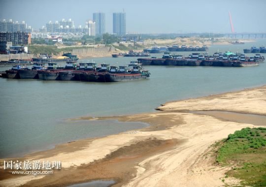 國(guó)家旅游地理 江西南昌9月20日訊 9月20日,因水位下降,貨船停泊在贛江南昌段。受近期降水偏少和上游來(lái)水少的影響,江西贛江水位持續(xù)下降,提前一個(gè)多月進(jìn)入枯水期。據(jù)南昌水文站監(jiān)測(cè),截至9月20日12時(shí),贛江南昌段水位已降至13.56米,接近13.14米的最低通航水位。 /新華社記者周科攝