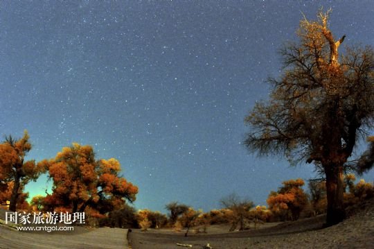 這是10月10日在內(nèi)蒙古阿拉善盟額濟納旗拍攝的星空下的胡楊林。