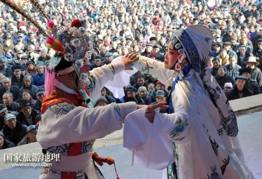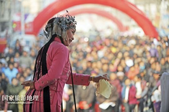 國家旅游地理 1月2日訊 2014年1月2日,在安徽省亳州市譙城區(qū)十河鎮(zhèn),演員在表演亳州非遺劇種“二夾弦”。當日,安徽省亳州市譙城區(qū)2014年“三下鄉(xiāng)”活動啟動,當地醫(yī)療、文化、科技部門的“三下鄉(xiāng)”服務隊到基層開展文化、衛(wèi)生、科技、法律下鄉(xiāng)活動,為基層群眾送上新年的問候。 /新華社發(fā)(張延林 攝)