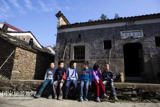 國(guó)家旅游地理 江西九江5月12日訊 5月12日,孩子們坐在土目源村的老房子前玩耍。空幽的山谷,不息的溪流,斑駁的石墻,古樸的石屋。在江西省北部山區(qū),有一座石屋山居的古村落——都昌縣大港鎮(zhèn)土目源村。