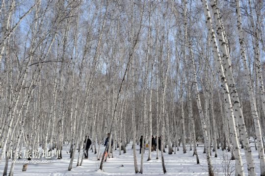 游人在內(nèi)蒙古呼倫貝爾額爾古納市境內(nèi)的白樺林中踏雪(11月8日攝)。