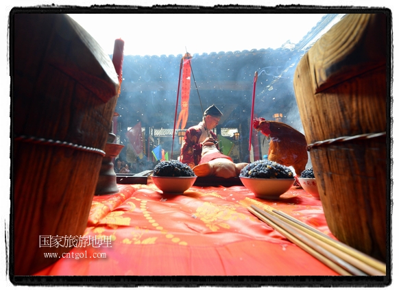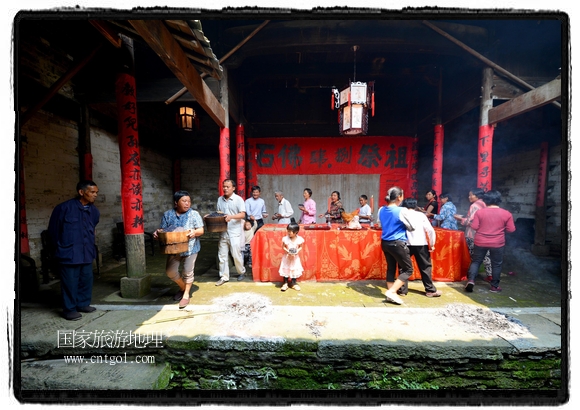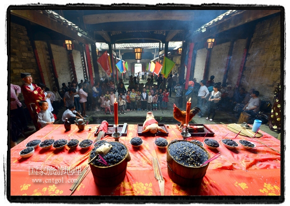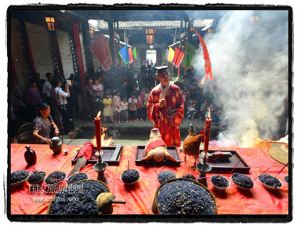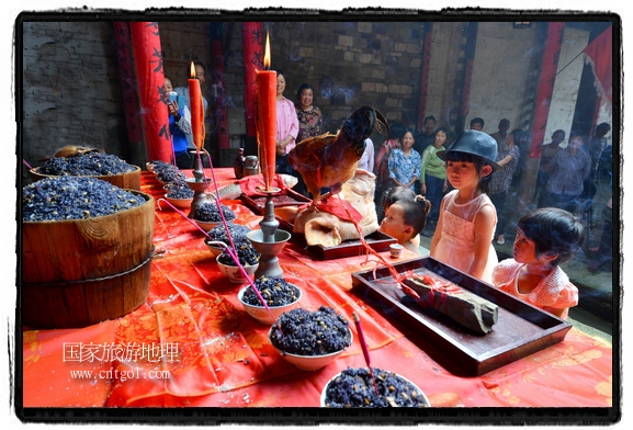 國家旅游地理 江西婺源(上饒)5月31日訊(特約記者王國紅 通訊員程新德攝影報道) “祭祀開始、鳴炮奏樂、祭拜、主持人講話、結(jié)束鳴炮”,5月25日,農(nóng)歷四月初八,石佛村烏飯節(jié),村民將自家精心制作的烏飯端進祠堂祭祀。江西省婺源縣段莘鄉(xiāng)石佛村每年都要舉行烏飯祭祖活動,各家各戶將自家精心制作的烏飯端進祠堂……
